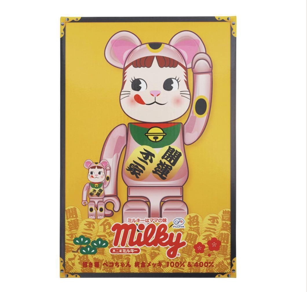 Be@rbrick 400% + 100% Milk Girl Peach Gold Lucky Cat